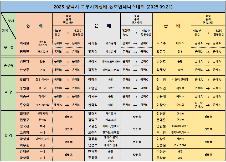 2025 ÆòÅýà ºÏºÎÁöȸÀå¹è µ¿È£ÀÎÅ״Ͻº´ëȸ (2025.09.21) ÃÖÁ¾°á°ú
