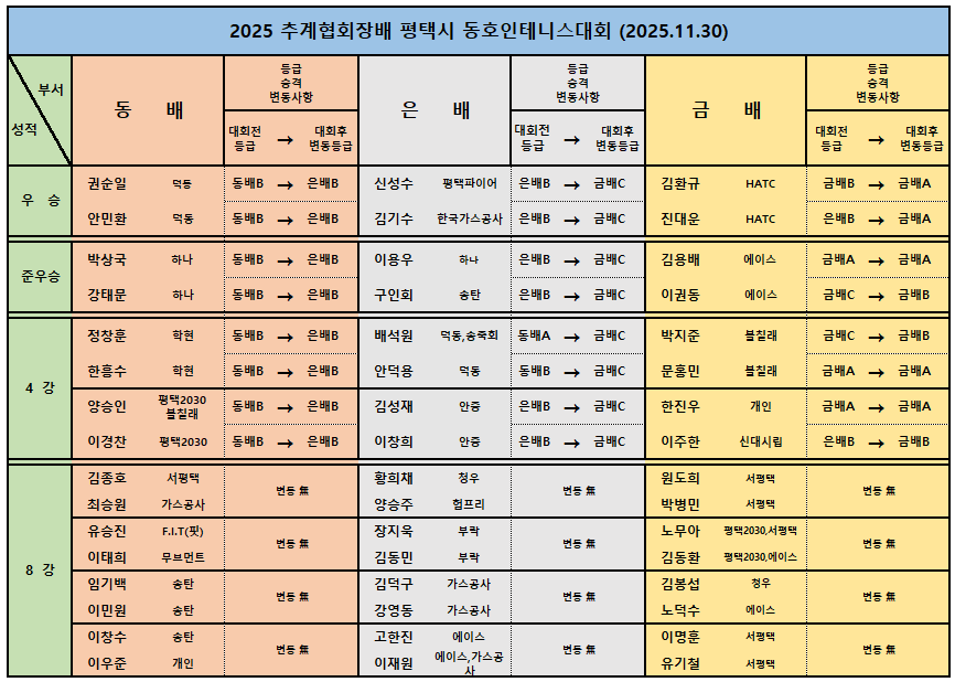 2025 Ãß°è ÇùȸÀå¹è ÆòÅýà µ¿È£ÀÎ Å״Ͻº´ëȸ (2025.11.30) ÃÖÁ¾°á°ú