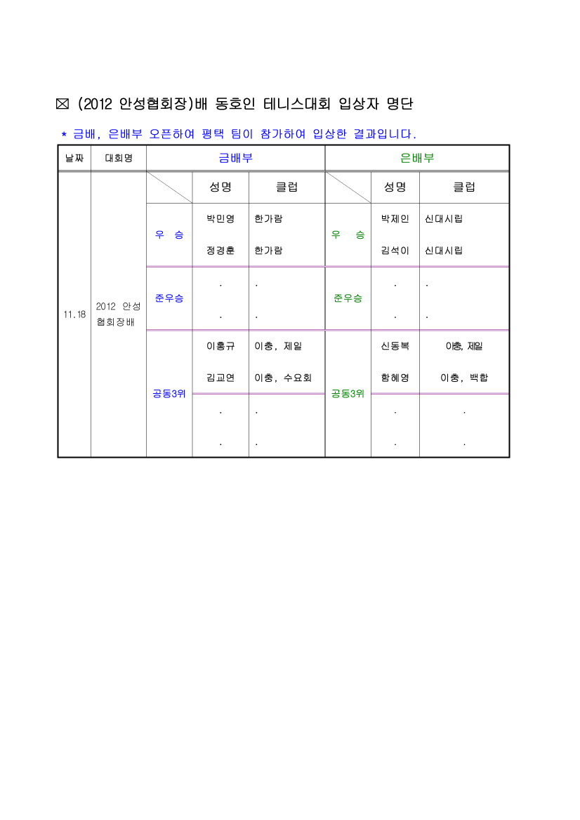 2012 ¾È¼ºÇùȸÀå¹è µ¿È£ÀÎ Å״Ͻº ´ëȸ(2012.11.18)