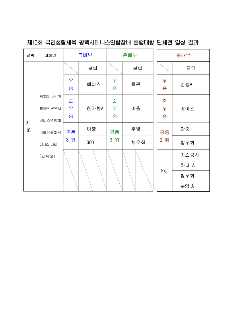[ÆòÅýÃ] Á¦10ȸ ±¹¹Î»ýȰüÀ° ÆòÅýÃÅ״Ͻº¿¬ÇÕÀå¹è Ŭ·´´ëÇ× ´ÜüÀü ÀÔ»ó °á°ú(2013.3.16)