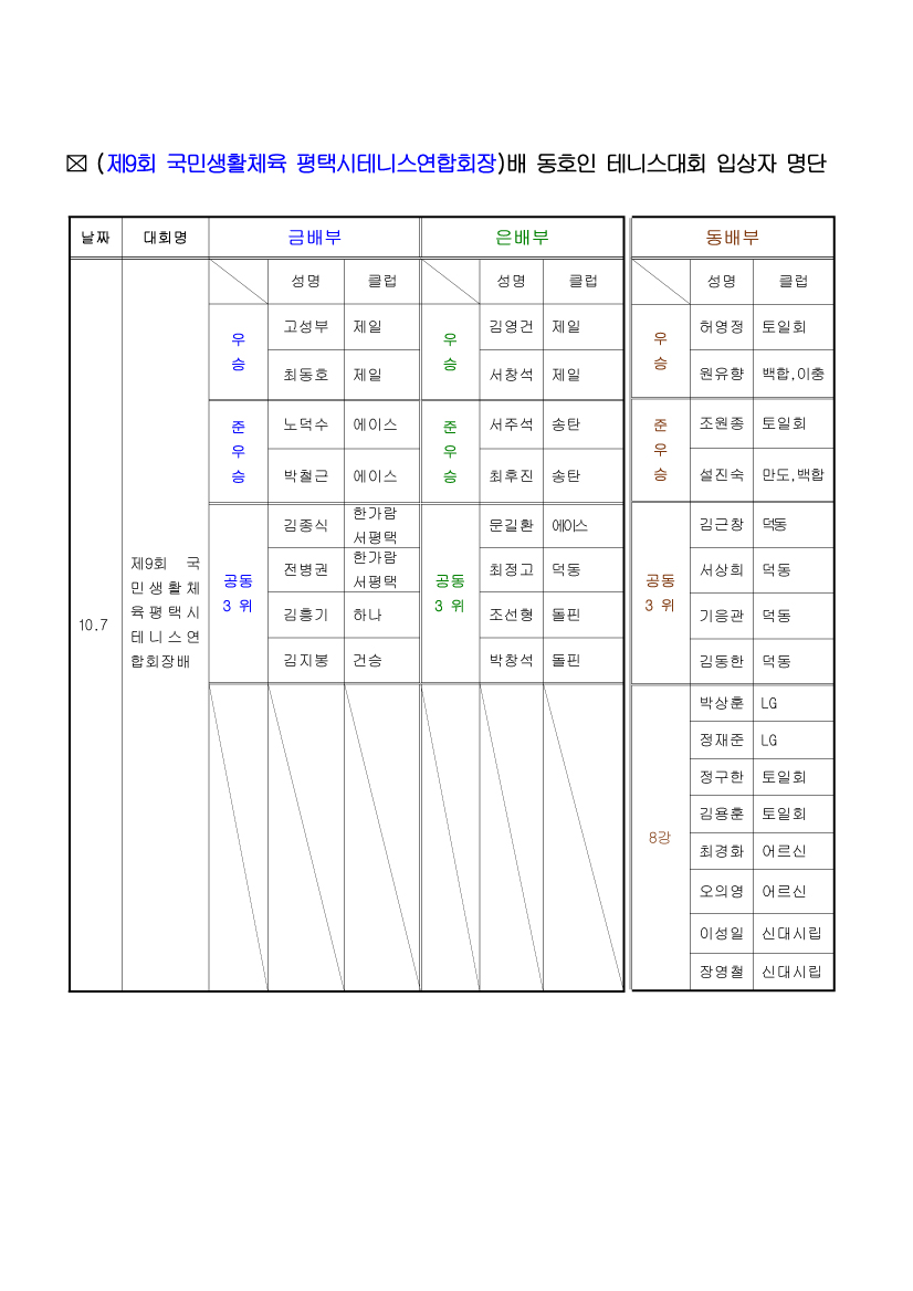 [ÆòÅýÃ] Á¦9ȸ ±¹¹Î»ýȰüÀ° ÆòÅýÃÅ״Ͻº¿¬ÇÕȸÀå¹è °³ÀÎÀü ÀÔ»óÀÚ ¸í´Ü ¾È³»(2012.10.7)