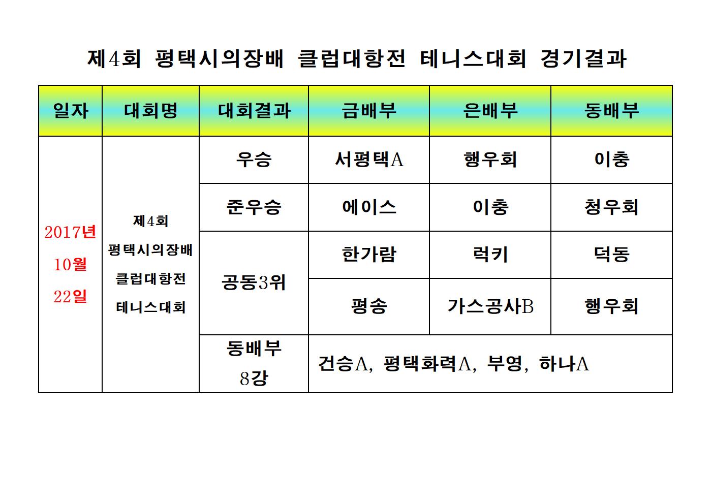 Á¦4ȸ ÆòÅýÃÀÇÀå¹è Ŭ·´´ëÇ×Àü Å״Ͻº´ëȸ °æ±â °á°ú.
