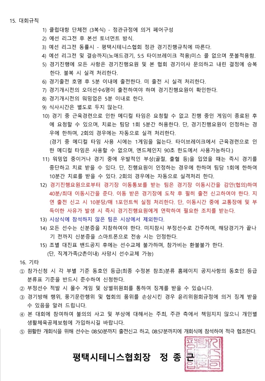 Á¦15ȸ ³²ºÎÁöȸÀå¹è Å״Ͻº ´ëȸ ºÎº° ¿¹¼± ´ëÁøÇ¥ ¼öÁ¤