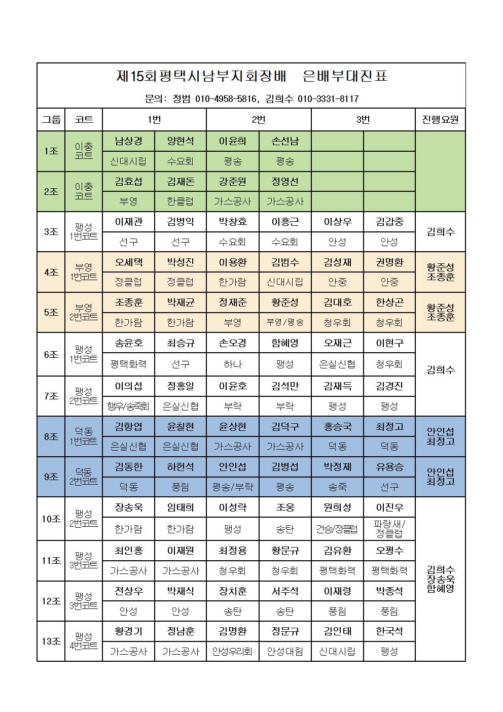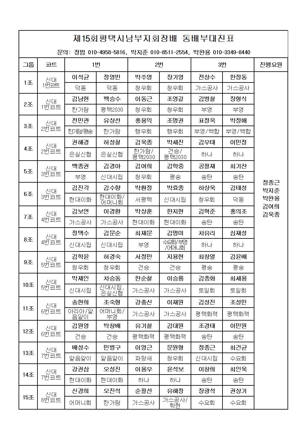 Á¦15ȸ ³²ºÎÁöȸÀå¹è Å״Ͻº ´ëȸ ºÎº° ¿¹¼± ´ëÁøÇ¥ ¼öÁ¤