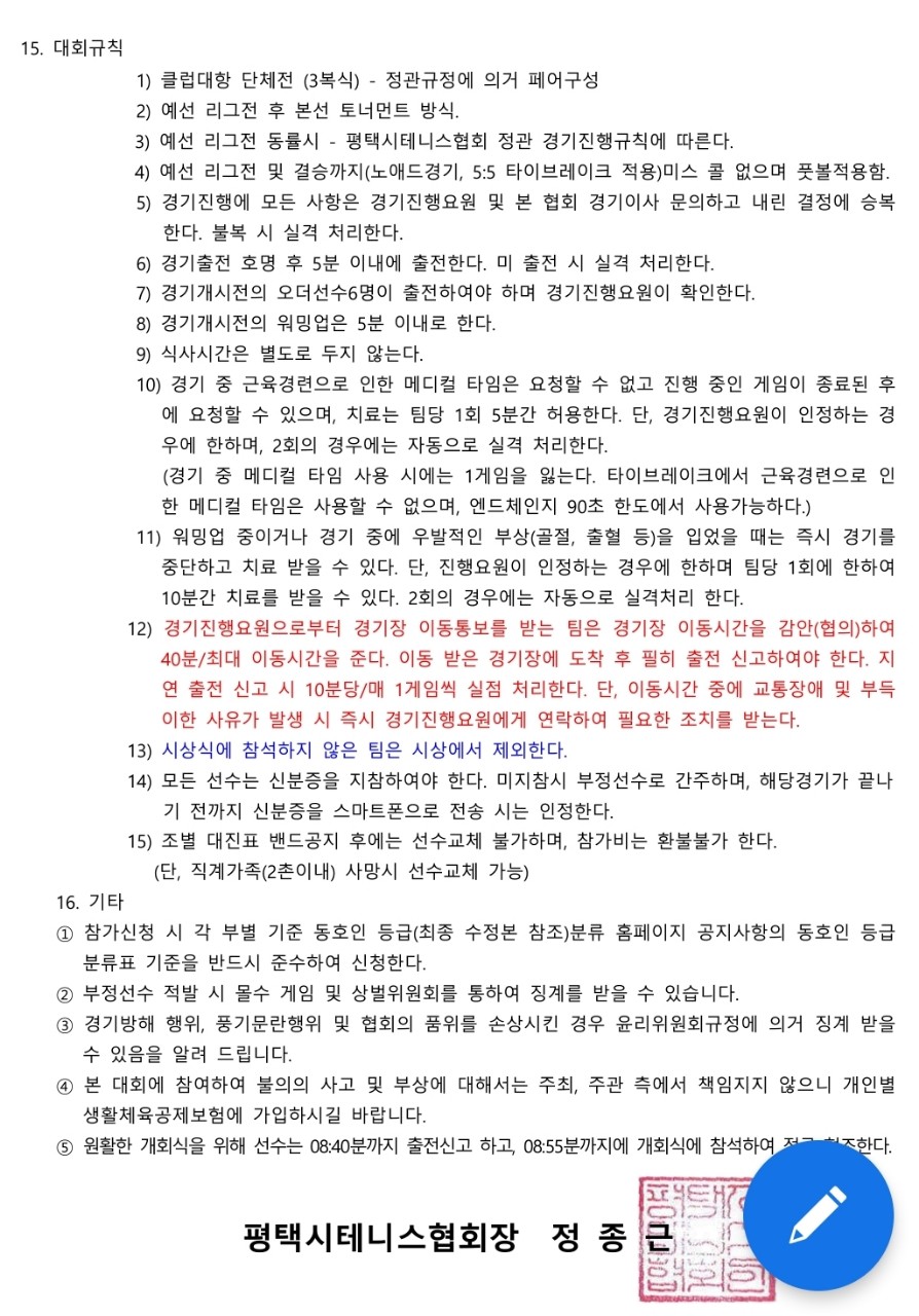 Á¦15ȸ ³²ºÎÁöȸÀå¹è Å״Ͻº ´ëȸ ºÎº° ¿¹¼± ´ëÁøÇ¥ ¼öÁ¤