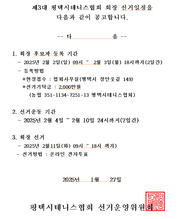 Á¦3´ë ÆòÅýÃÅ״ϽºÇùȸ ȸÀå¼±°Å °ø°í