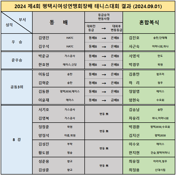 2024 Á¦4ȸ ÆòÅýÿ©¼º¿¬¸ÍȸÀå¹è Å״Ͻº´ëȸ ÃÖÁ¾°á°ú