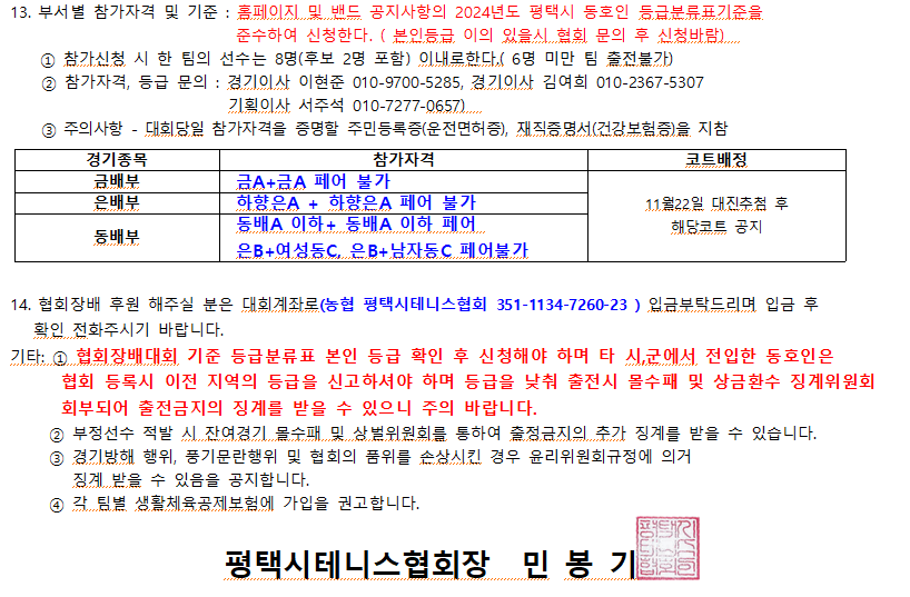 2024 Ãß°è ÇùȸÀå¹è Ŭ·´´ëÇ× ÆòÅýà Å״Ͻº´ëȸ Âü°¡¿ä° ¹× ´ëȸ±âÁØ µî±ÞºÐ·ùÇ¥