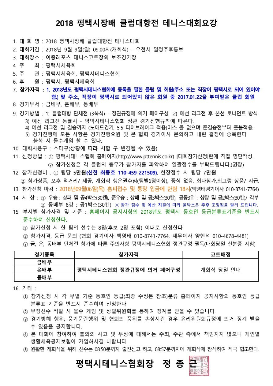 2018 ÆòÅýÃÀå¹è Ŭ·´´ëÇ×Àü Å״Ͻº´ëȸ °á»ê³»¿ª °øÁö