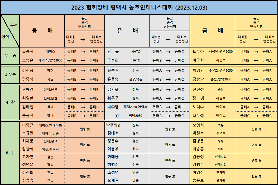 2023 ÇùȸÀå¹è ÆòÅýà µ¿È£ÀÎ Å״Ͻº´ëȸ(2023.12.03)-°³ÀÎÀü °á°ú