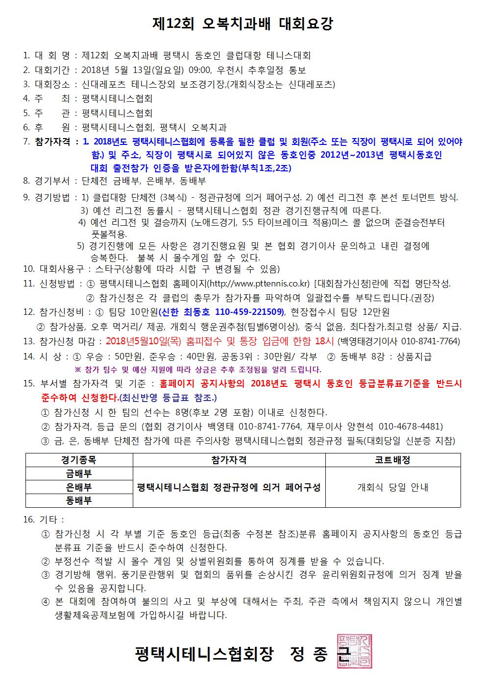 2018 Á¦12ȸ ¿Àº¹Ä¡°ú¹è Ŭ·´´ëÇ×Àü Å״Ͻº´ëȸ °á»ê³»¿ª °øÁö