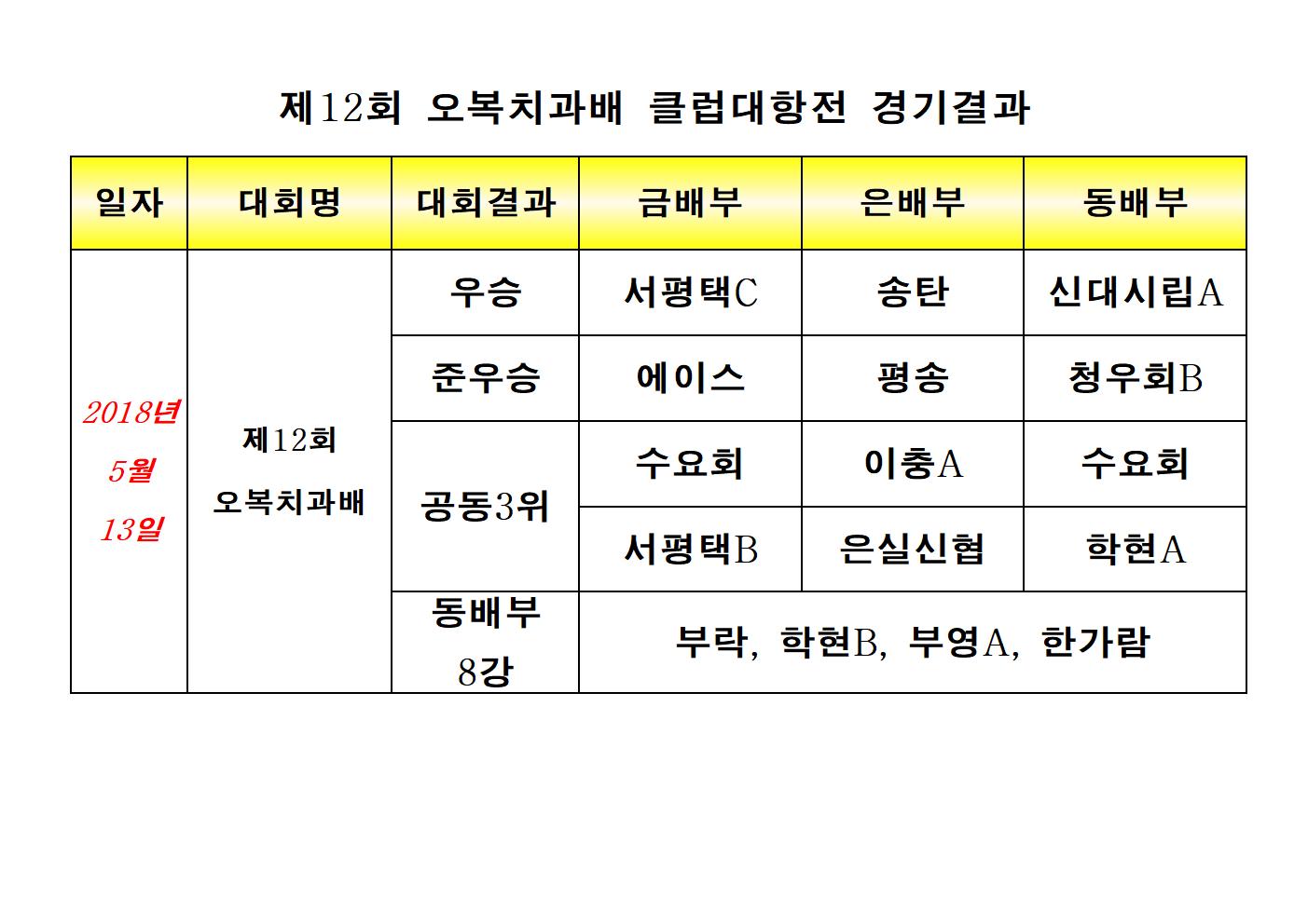 Á¦12ȸ ¿Àº¹Ä¡°ú¹è Ŭ·´´ëÇ×Àü °æ±â °á°ú.