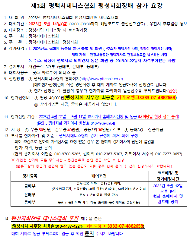 681 2023 ÇùȸÀå¹è ÆòÅýà µ¿È£ÀÎ Å״Ͻº´ëȸ Âü°¡¿ä°­ ÆòÅÃÇùȸ 09-13 24290