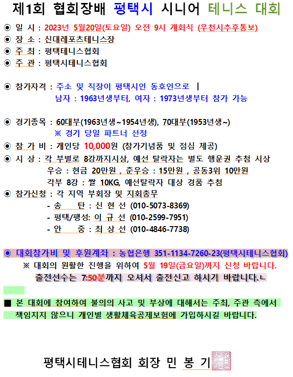 Á¦1ȸ ÇùȸÀå¹è ÆòÅýà ½Ã´Ï¾î Å״Ͻº´ëȸ Âü°¡¿ä°(2023.5.20.).hwp (109.0K)