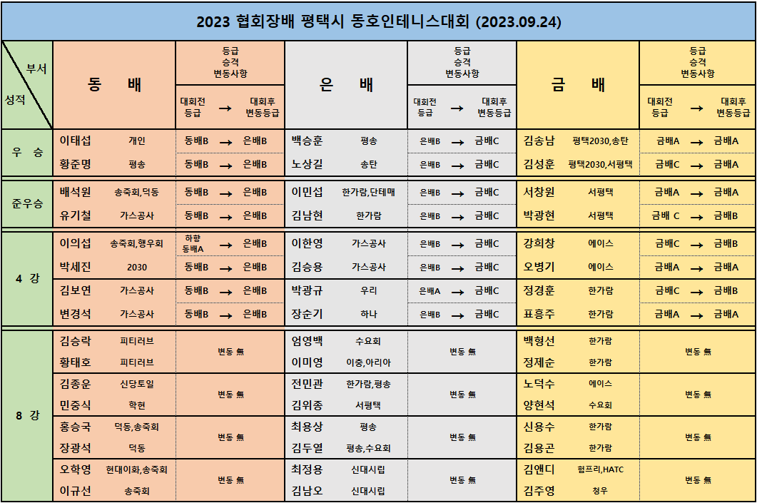 2023 ÇùȸÀå¹è ÆòÅýà µ¿È£ÀÎ Å״Ͻº´ëȸ (2023.09.24) ÃÖÁ¾°á°ú¡¦
