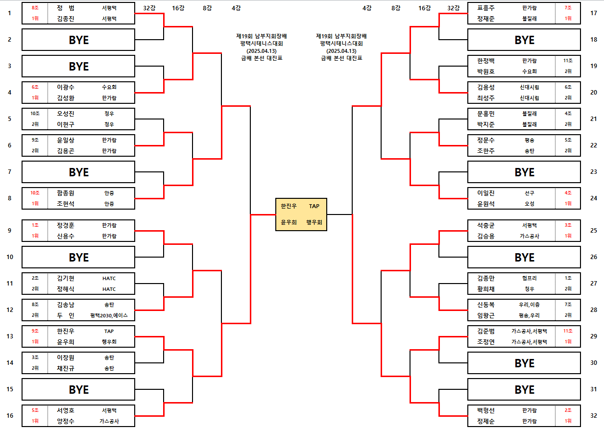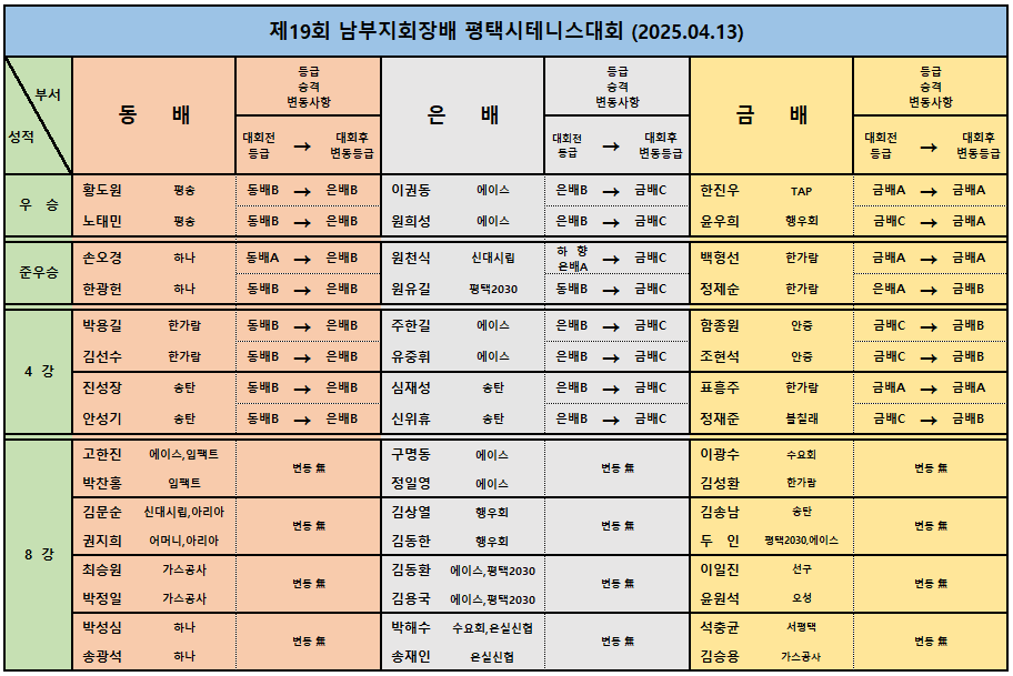 Á¦19ȸ ÆòÅýÃÅ״ϽºÇùȸ ³²ºÎÁöȸÀå¹è Å״Ͻº´ëȸ(2025.04.13) ÃÖÁ¾°á°ú ¹× ÀÔ»ó»çÁø