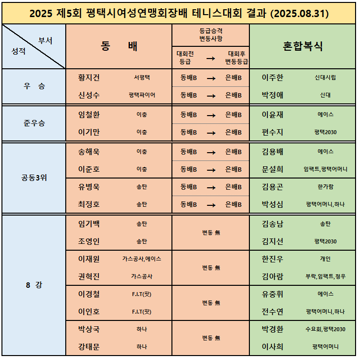 Á¦3ȸ ÇùȸÀå¹è ÆòÅýà ½Ã´Ï¾îÅ״Ͻº ´ëȸ (2025.05.31) °á°ú