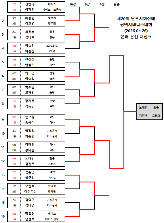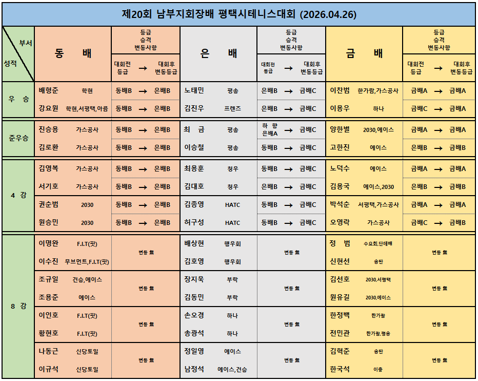 Á¦20ȸ ÆòÅýÃÅ״ϽºÇùȸ ³²ºÎÁöȸÀå¹è µ¿È£ÀÎÅ״Ͻº´ëȸ(2026.04.26) ÃÖÁ¾°á°ú ¹× ÀÔ»ó»çÁø